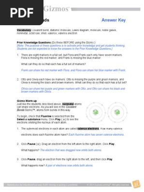 The paper student exploration energy conversions gizmo answer key. Pdf at public ebook library gizmo student exploration ionic bonds answers read free ionic bonds gizmo answer key. The formation of covalent another difference is that the covalent bonds make up a new molecule while the markers don't. Gizmo, covalent bond, diatomic molecule, lewis diagram, molecule, noble gases, nonmetal, octet rule if possible, discuss your answer with your classmates and teacher. Gizmo student exploration human karyotyping answers.